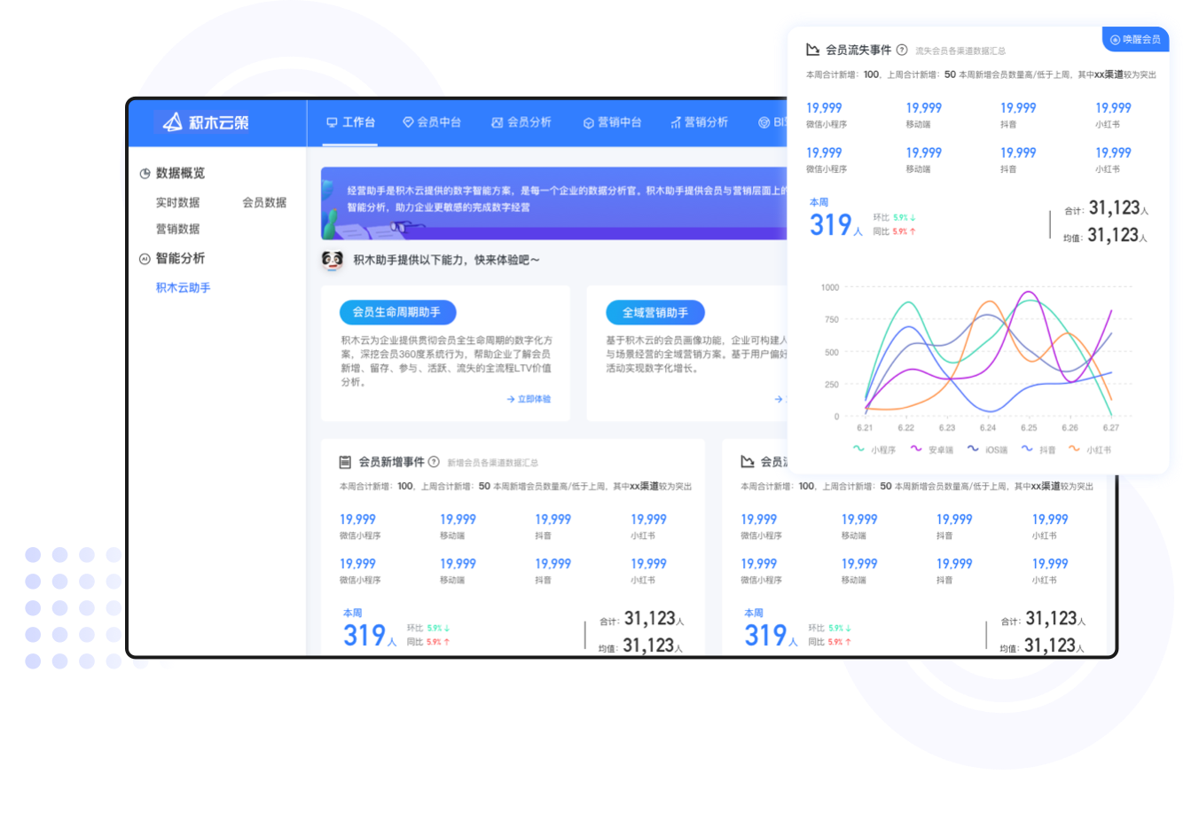 集成品牌公域+私域的會(huì)員數(shù)據(jù),助力企業(yè)打造全渠道客戶數(shù)據(jù)分析,消費(fèi)者洞察到智能營銷的數(shù)字化客戶經(jīng)營系統(tǒng)